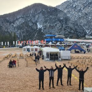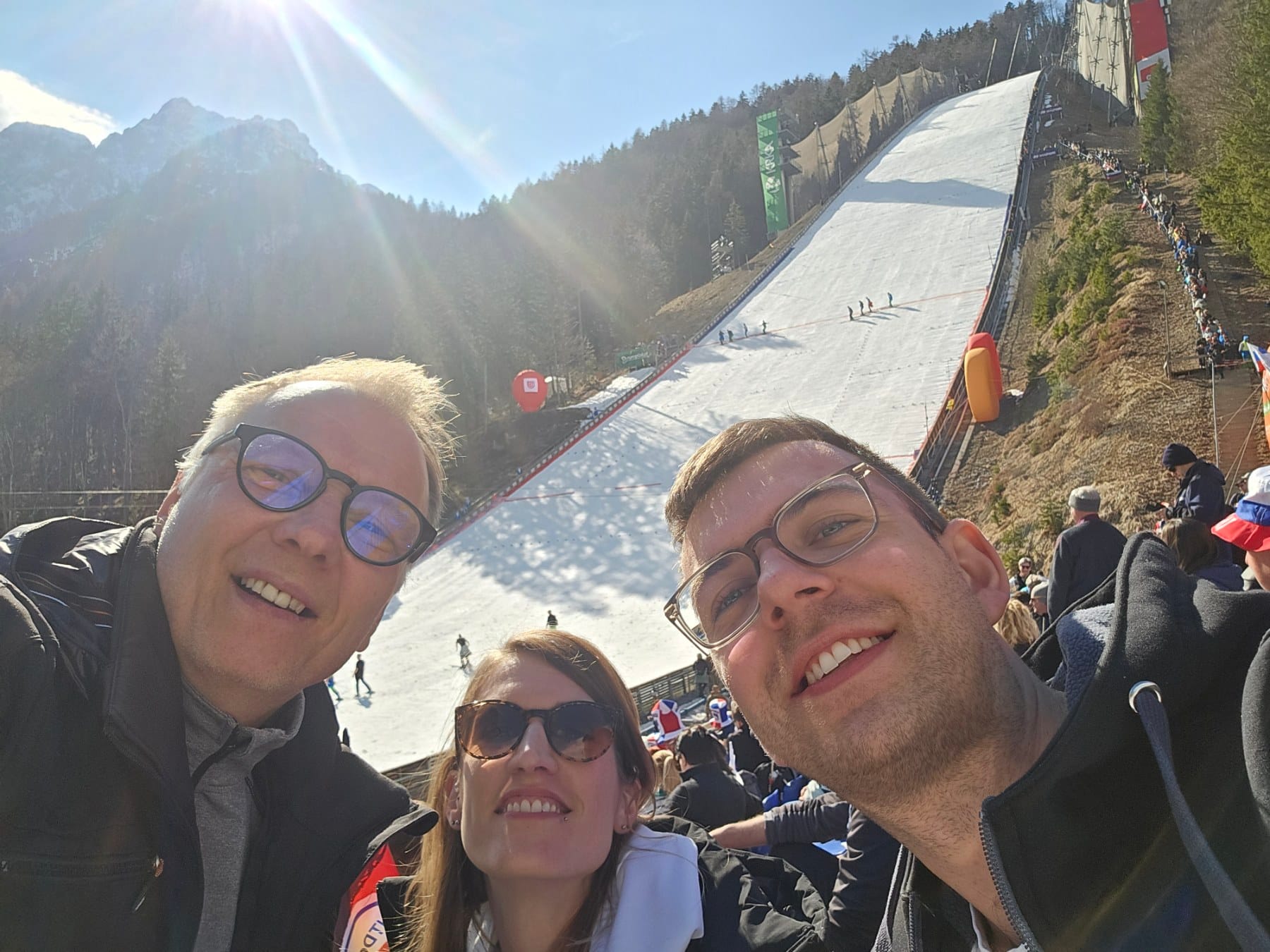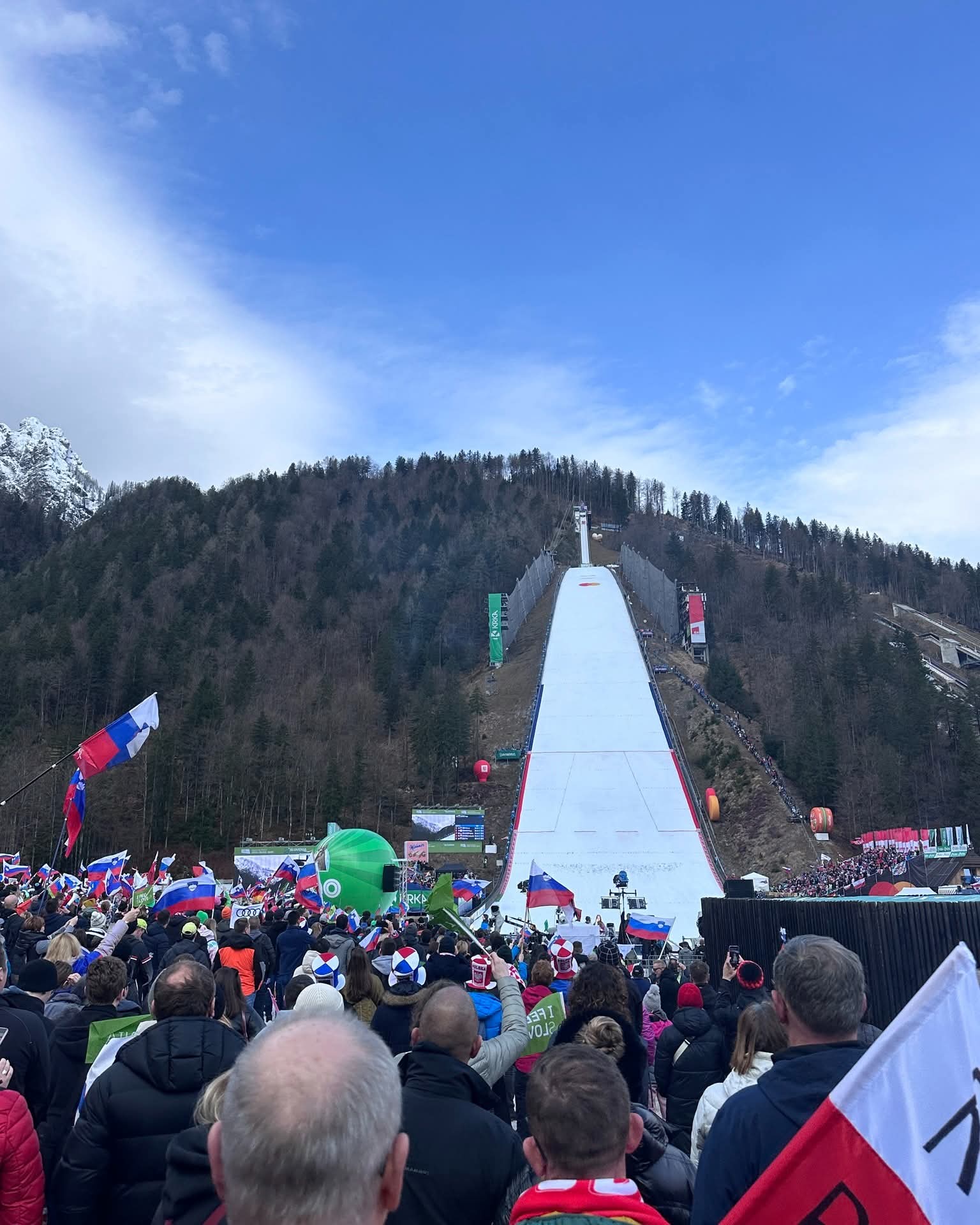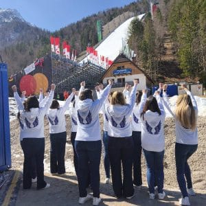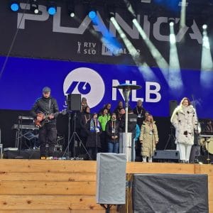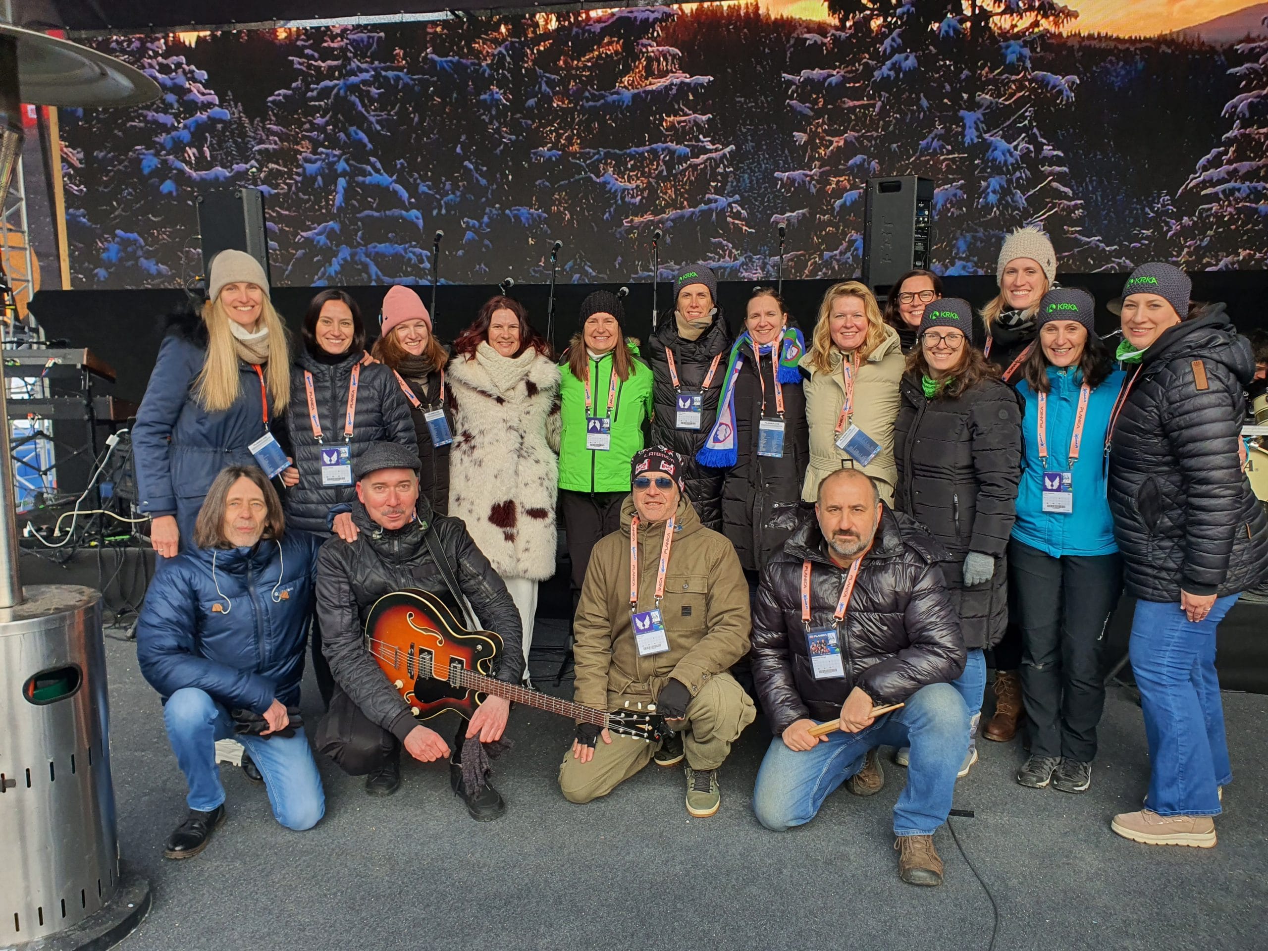 Planiški praznik so v soboto, 28. marca, dodatno popestrile naše pevke iz MePZ Pomlad Novo mesto, ki so skupaj z glasbeno skupino Elevators in plesalkami odlično otvorile prve ženske skoke na planiški velikanki.